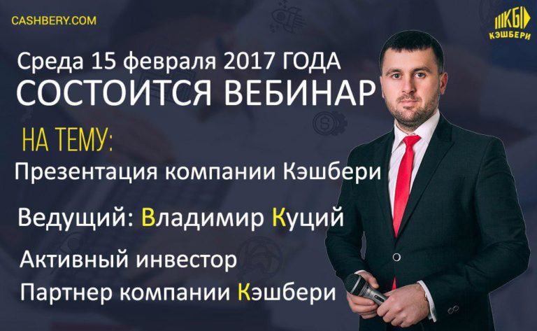 Cashbery.com — 15 февраля состоялся вебинар на тему: «Презентация компании Кэшбери». Инвесторы имели возможность задавать интересующие их вопросы, на которые отвечал активный инвестор и партнер компании Владимир Куций.